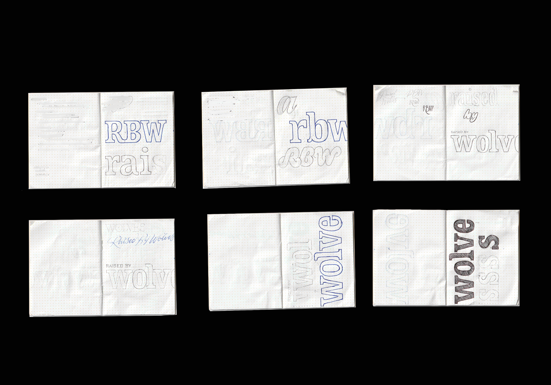 Custom lettering designs for t-shirts, hoodies, etc. for Raised by Wolves Fall 2021 and Spring 2023 collections.